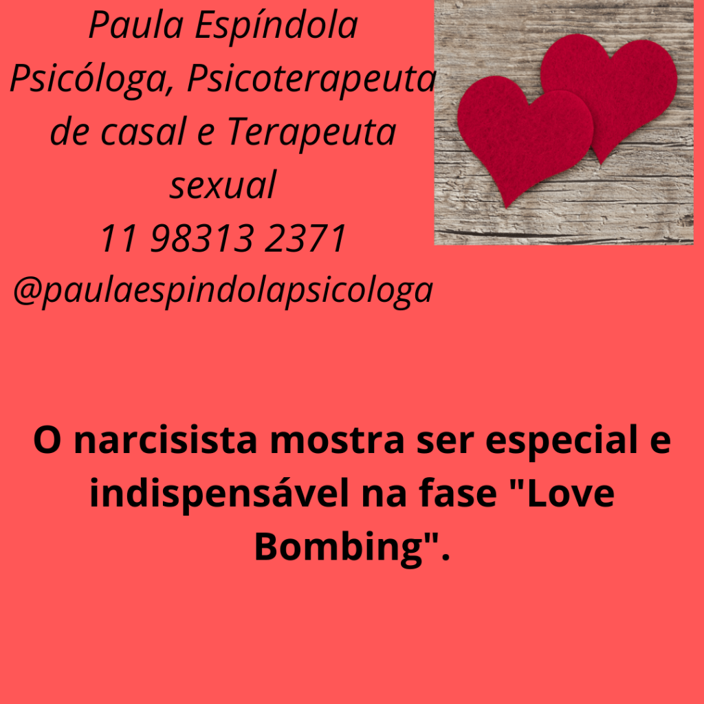 O relacionamento com narcisista passa por etapas e o “Love Bombing” é uma delas, onde ele fará de tudo para mostrar que é especial, mas isso tudo, faz parte do jogo de manipulação.