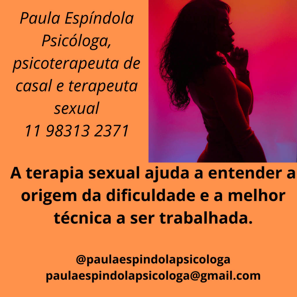 A terapia sexual ajuda a entender melhor qual a origem da dificuldade individual ou do casal e a melhor técnica a ser trabalhada e muitas vezes com acompanhamento de uma fisioterapia pélvica.