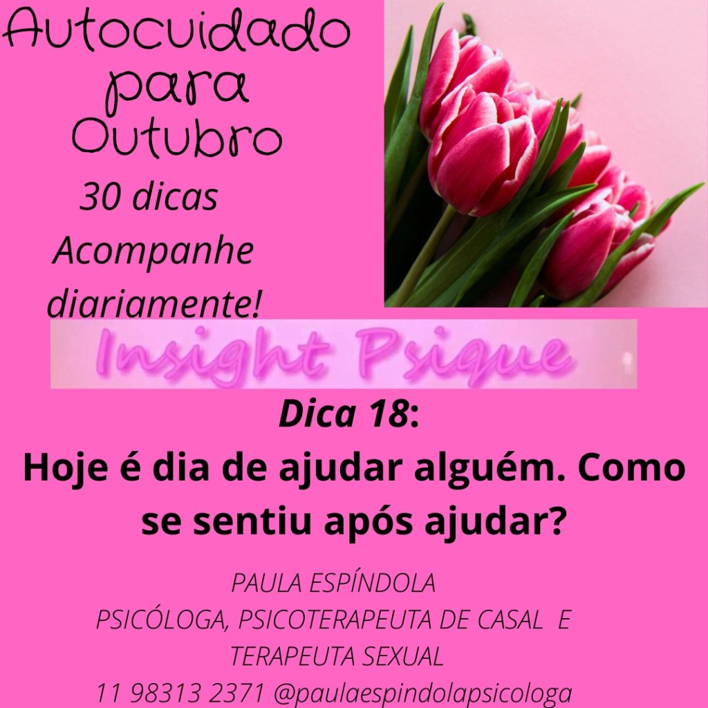 Dica 18 – Outubro 18 de outubro de 2021 Paulafreitaspsicologa Compartilhe isso: Compartilhar no X(abre em nova janela) 18+ Compartilhar no Facebook(abre em nova janela) Facebook Curtir Carregando... Relacionado