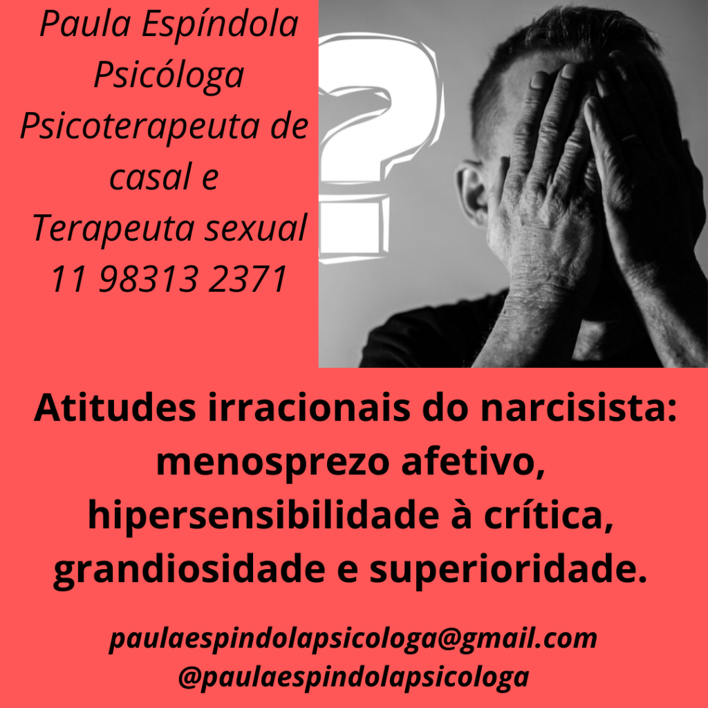 Segundo Walter Riso, a relação amorosa do narcisista gira ao redor de 3 atitudes irracionais, que são: