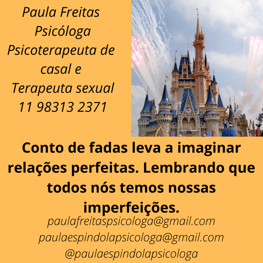 O relacionamento de conto de fadas nos leva a imaginar relações perfeitas, mas não existe pessoas perfeitas e muito menos relacionamentos perfeitos, somos seres humanos e assim como todos com suas imperfeições.