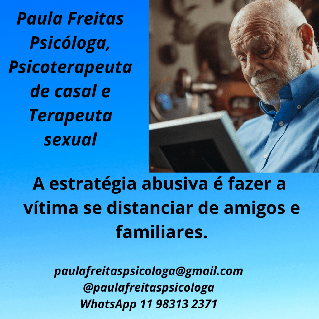 Uma estratégia abusiva é fazer a vítima se afastar de seus amigos e até familiares, principalmente quando percebe que poderão prejudicar o controle abusivo.