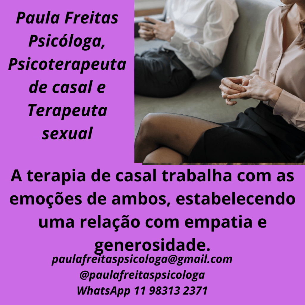 A terapia de casal trabalha na aprendizagem, de autorregular-se e saber lidar com as próprias emoções, cultivando juntos uma relação com empatia, respeito e generosidade.