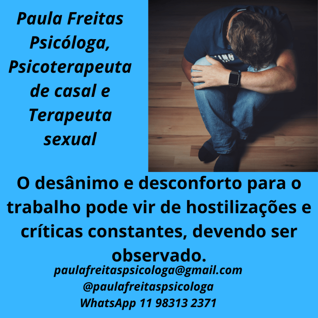 O fato de ir ao trabalho quando traz desânimo, desconforto, uma sensação gigante de peso, principalmente quando vem acompanhado de hostilizações e críticas constantes, deve ser bem observado e avaliado.