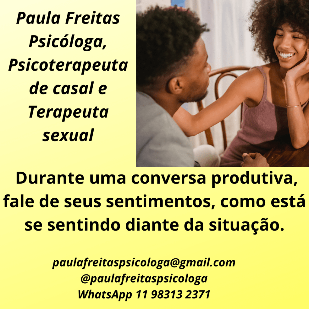 A dica de ouro para diálogo produtivo é falar de seus sentimentos e falar do fato em questão, ou seja, o possível pedido.