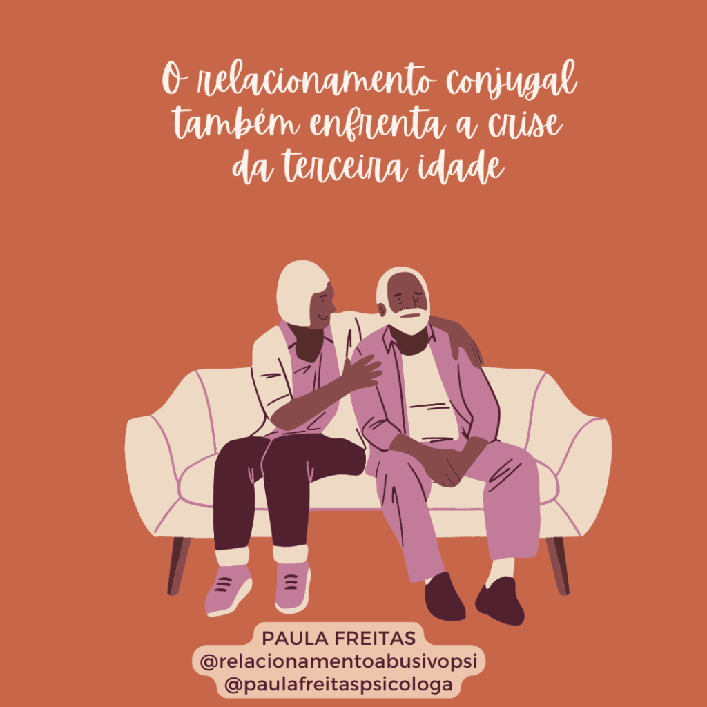 O relacionamento conjugal enfrenta também a crise da terceira idade, pois é uma fase de muitas mudanças. Todo ciclo de vida traz mudanças. Essa fase pode trazer insatisfação pessoal, profissional, filhos saindo de casa, preparação para serem avós.