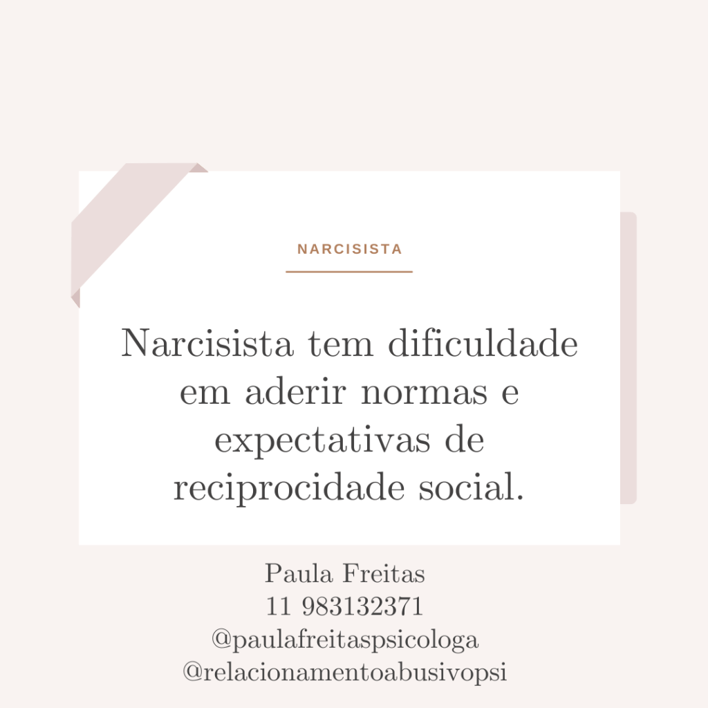 O orgulho do narcisista tem muito a ver com a posição social que deseja ter, mas tem dificuldades em aderir normas e expectativas de reciprocidade social.