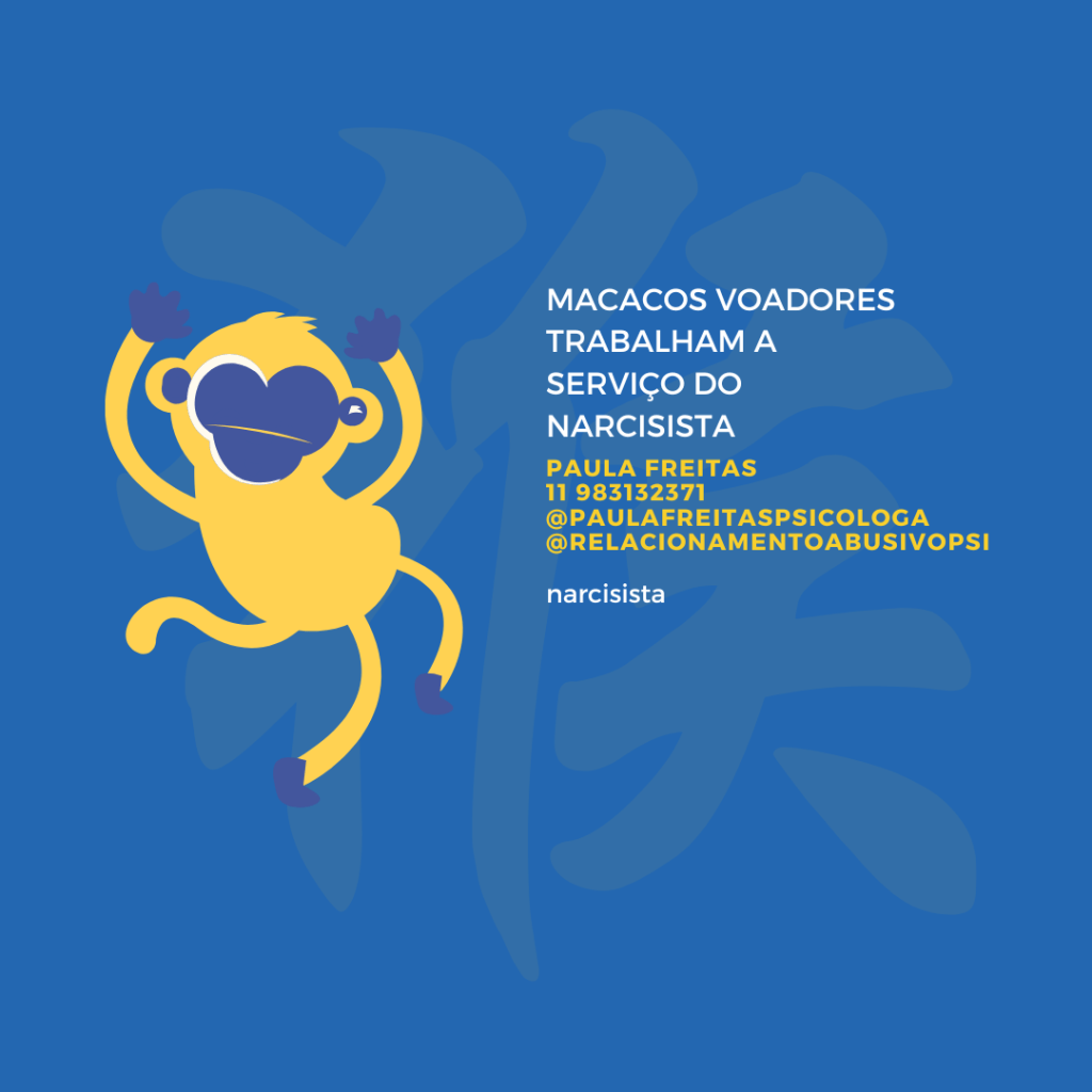 Os chamados “macacos voadores” nas relações narcisistas são pessoas que trabalham a serviço do narcisista, principalmente na hora do descarte, estão manipulados.
