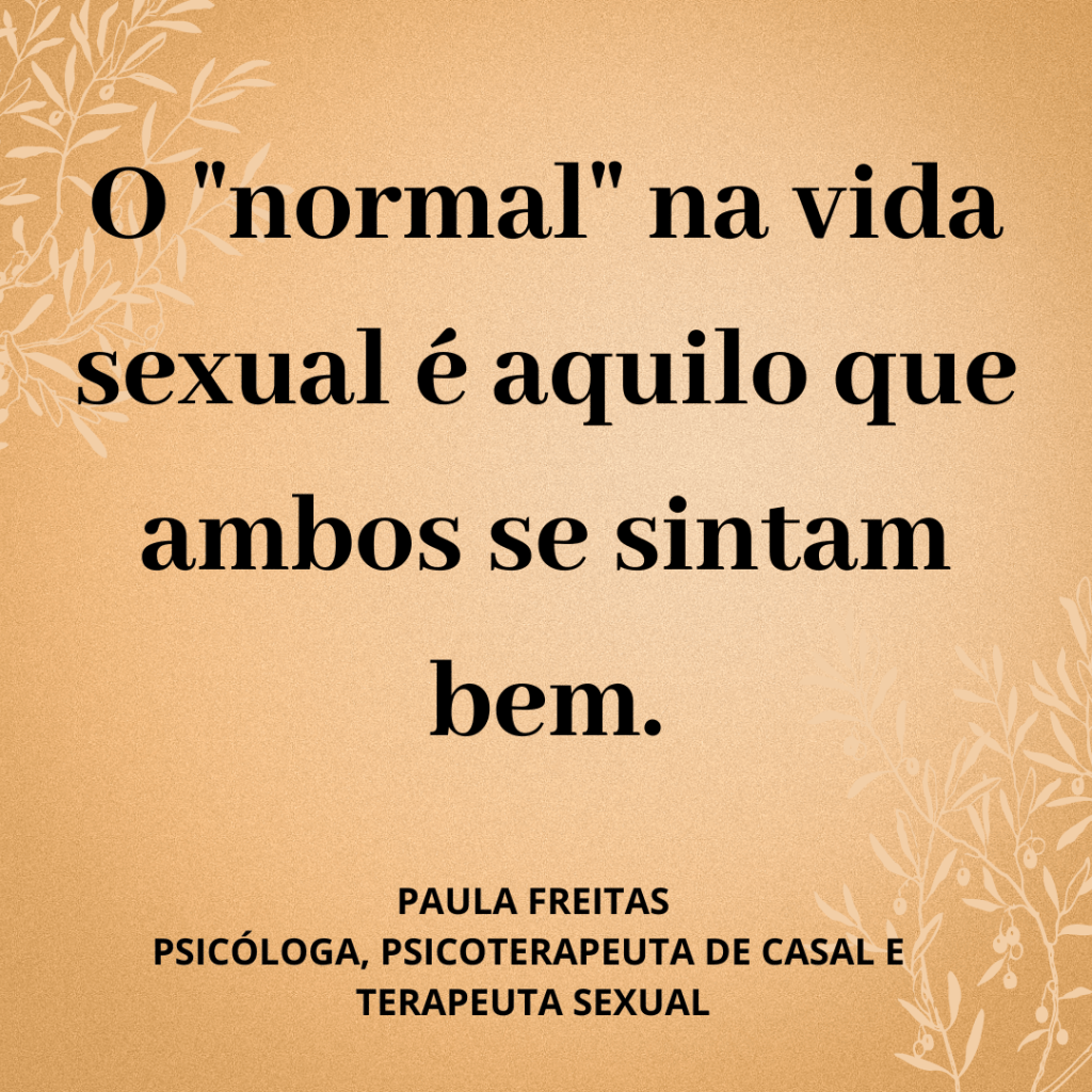 Pensando na sexualidade do casal, o chamado “normal” é a vida sexual que eles praticam e como se sentem, ou seja, o ideal é o casal estar sempre em busca de novos ajustamentos quando necessário quanto a frequência, forma, convivência e intimidade do casal.