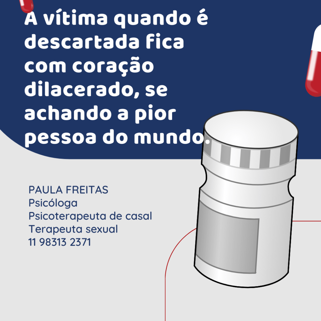 A vítima quando é descartada fica com coração dilacerado, se achando a pior pessoa do mundo.