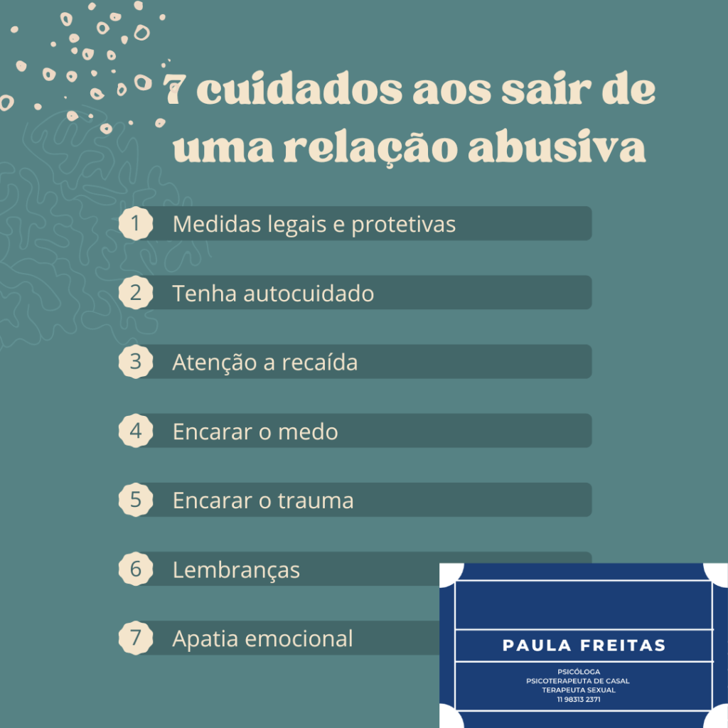 Todo cuidado possível será primordial ao sair de uma relação abusiva e deve ficar atenta em alguns aspectos como: