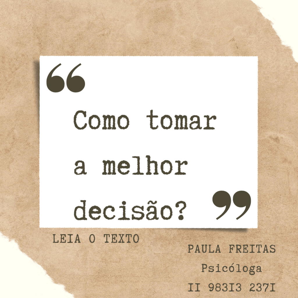 A melhor decisão é quando encoraja a um bem maior, que seja vantajosa, colocando a vida para frente para assim ficar mais ameno lidar com os desafios.