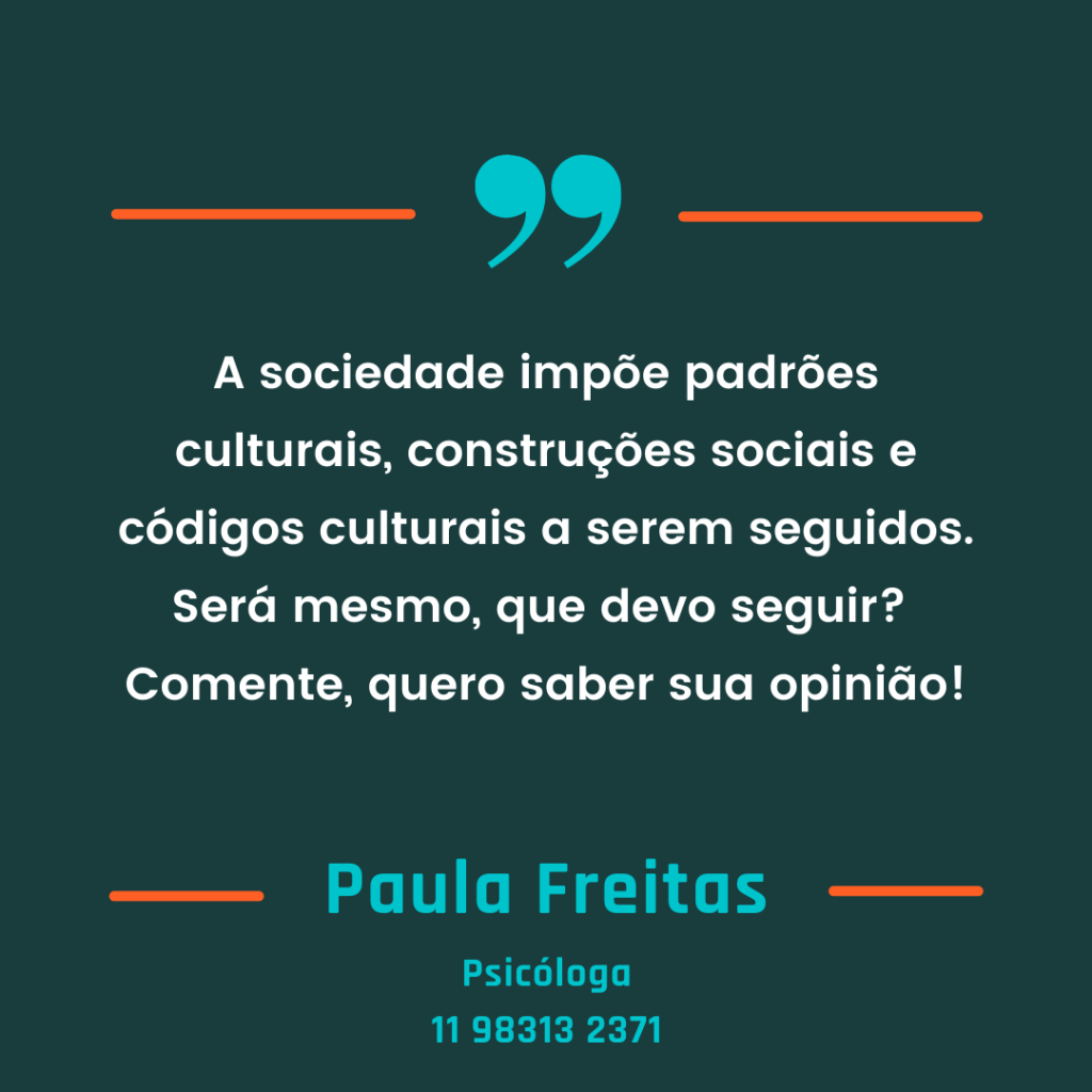 A sociedade impõe padrões culturais, construções sociais e códigos culturais a serem seguidos. Será mesmo, que devo seguir?