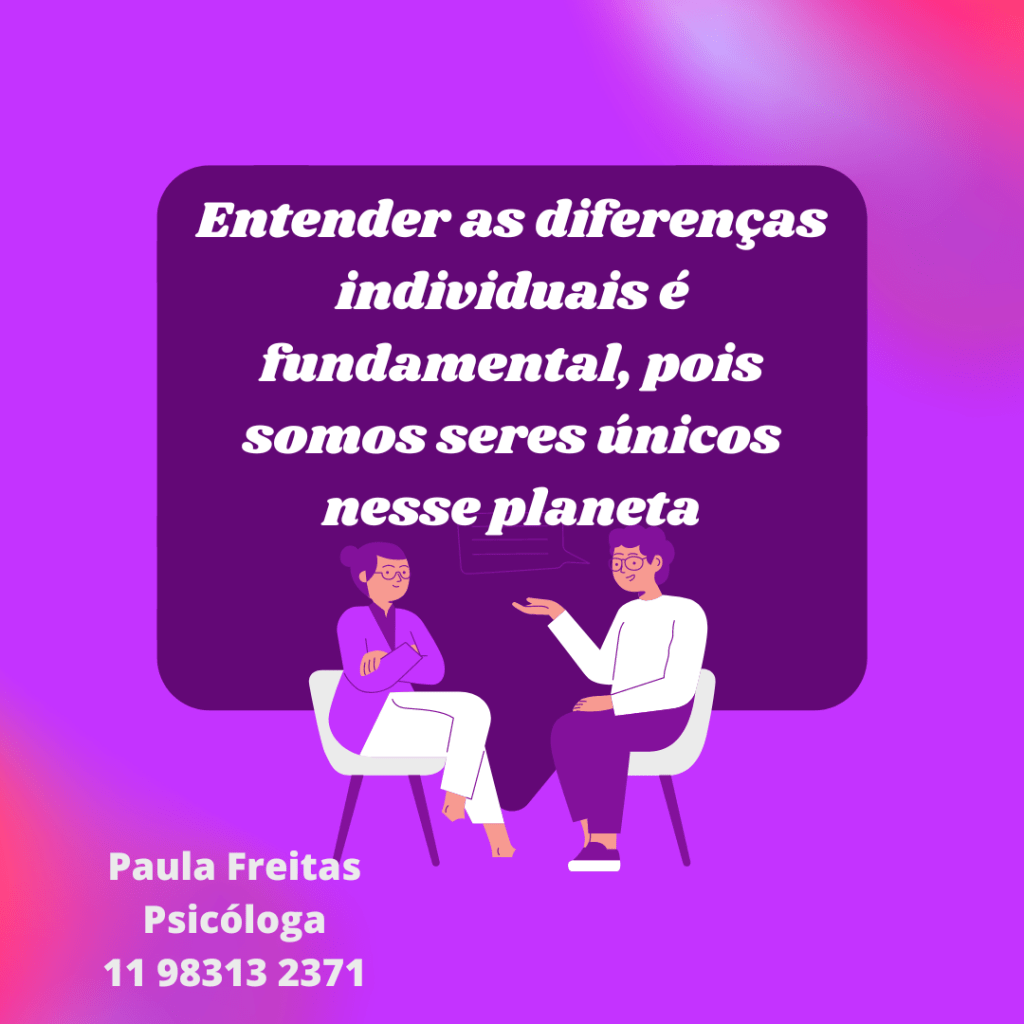 Entender as diferenças individuais é fundamental, pois somos seres únicos nesse planeta e isso é algo maravilhoso.