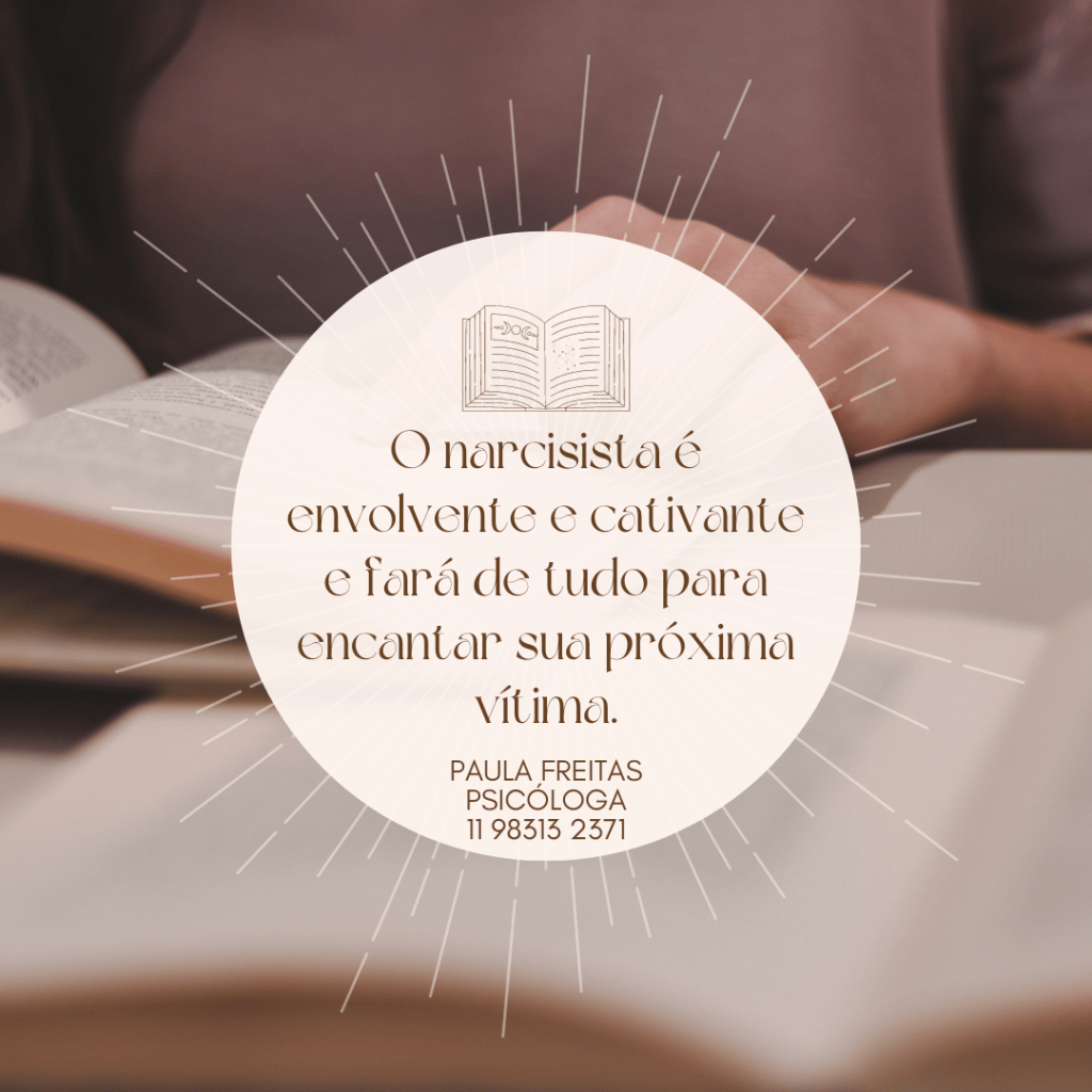 O narcisista é envolvente cativante e com esses tributos e qualificações que tanto se gaba, faz de tudo para encantar a vítima que está em sua mira.