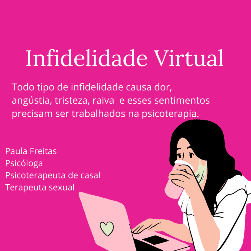 Toda a descoberta de infidelidade virtual ou não, trará muito sofrimento, angústia, tristeza, raiva e esses sentimentos precisarão ser trabalhados na terapia de casal, independentemente da decisão por permanecer ou desistir dessa relação.
