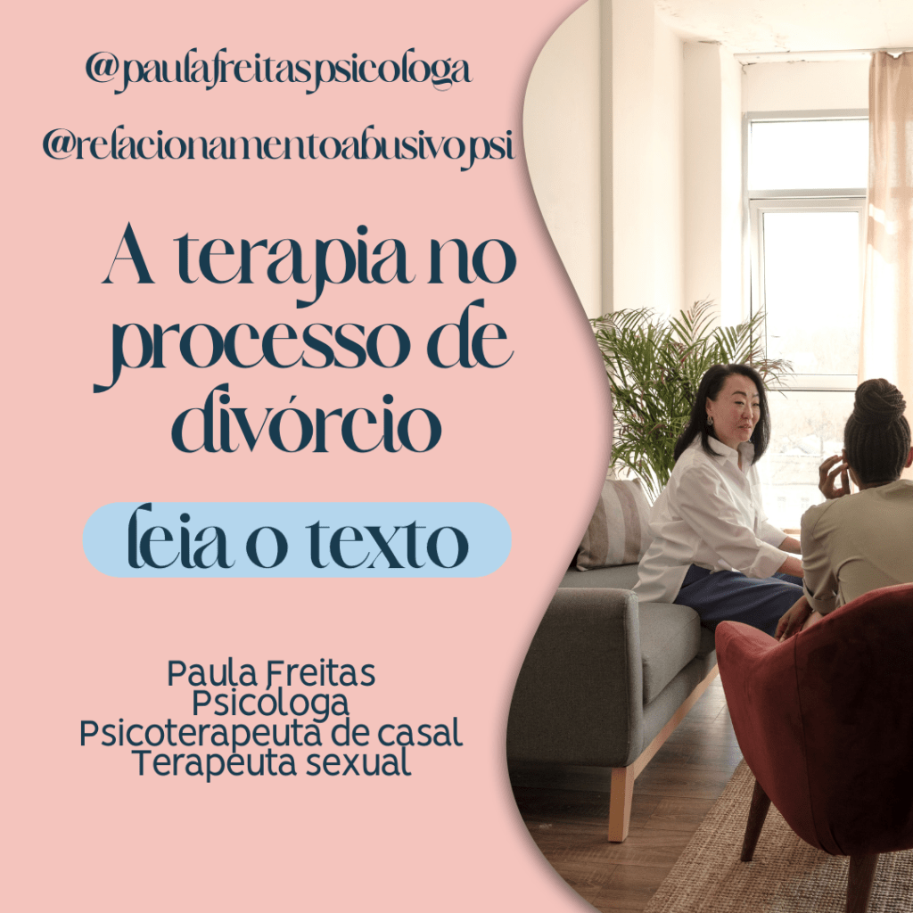 A psicoterapia será muito importante no processo do divórcio e terá um olhar para esse sofrimento com foco terapêutico.