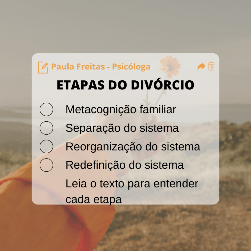- Redefinição do sistema: se acostumar com a nova vida, quando já tem clareza desse divórcio.