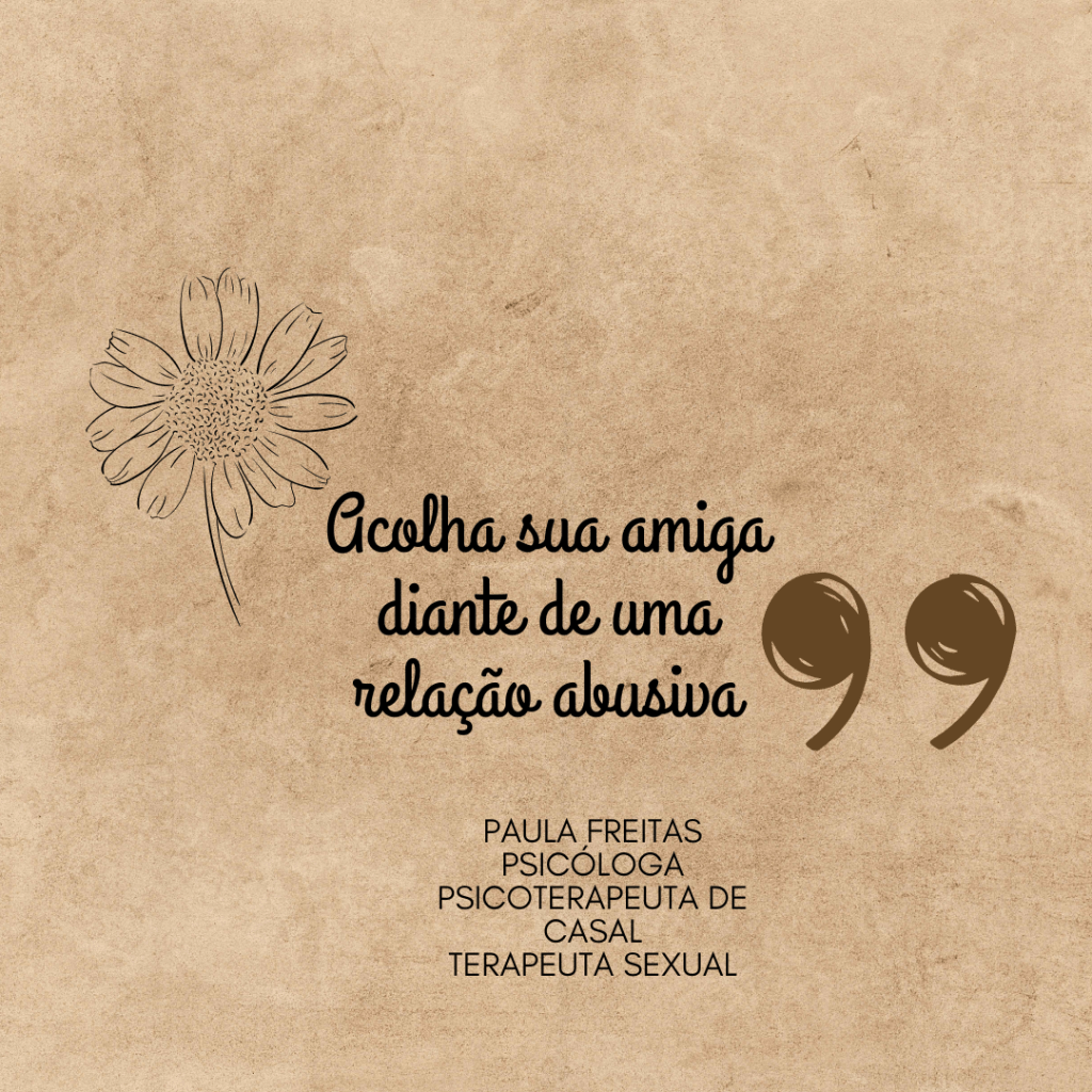 Quando a pessoa está numa relação abusiva, precisará de acolhimento e escuta, sem recriminações.